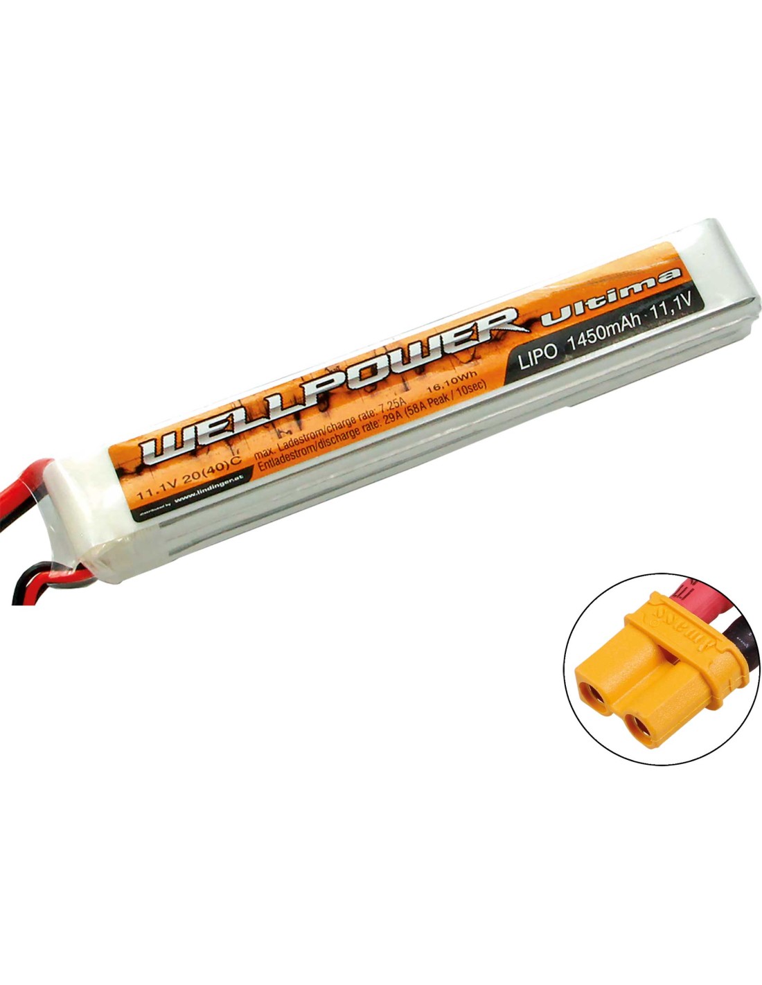 Batterie Lipo WELLPOWER ULTIMA 1450 mAh / 11.1 Volt 3S « SLIM » 20/40C XT-30