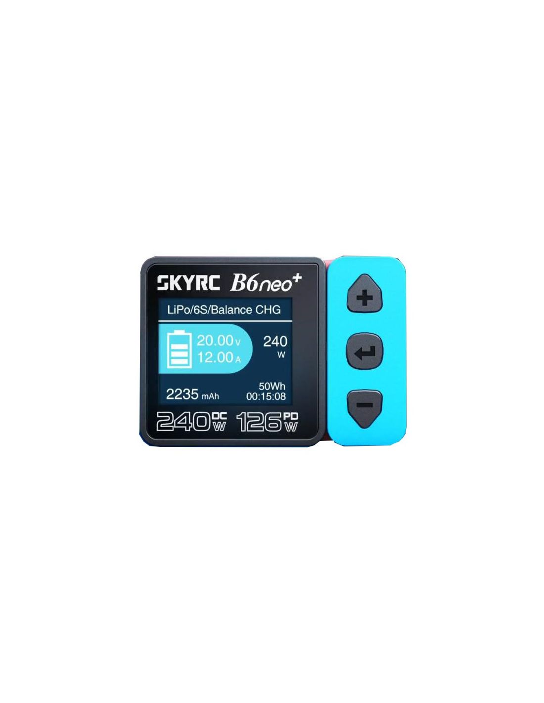Voici le chargeur B6neo+ : compact, puissant et conçu pour redéfinir l'efficacité. Vous n'en reviendrez pas de la puissance de charge contenue dans ce petit appareil ! Lorsqu'il est connecté au courant continu, le B6neo+ libère jusqu'à 240 W, et avec l'entrée PD 3.1, il atteint une puissance impressionnante de 126 W*.