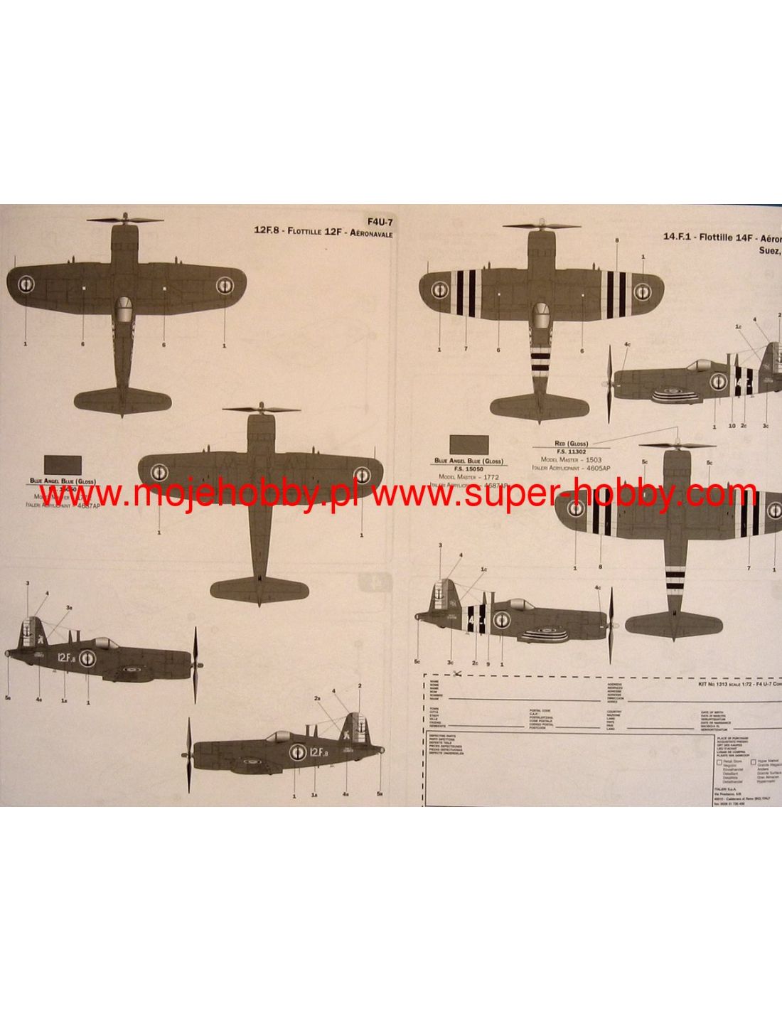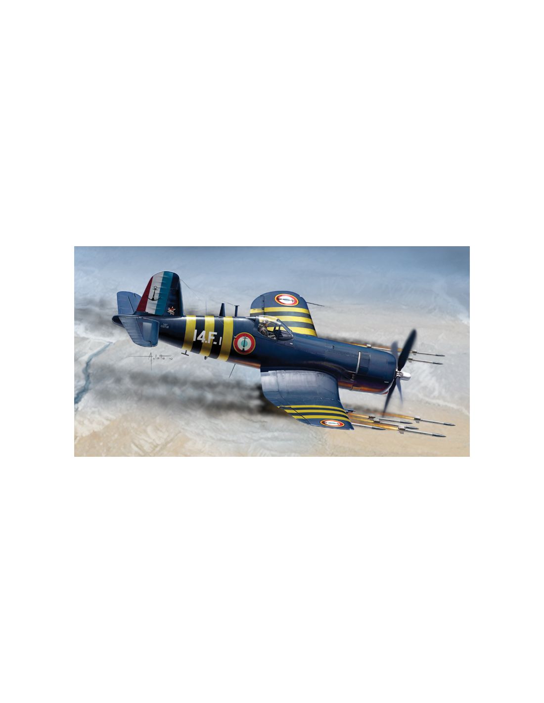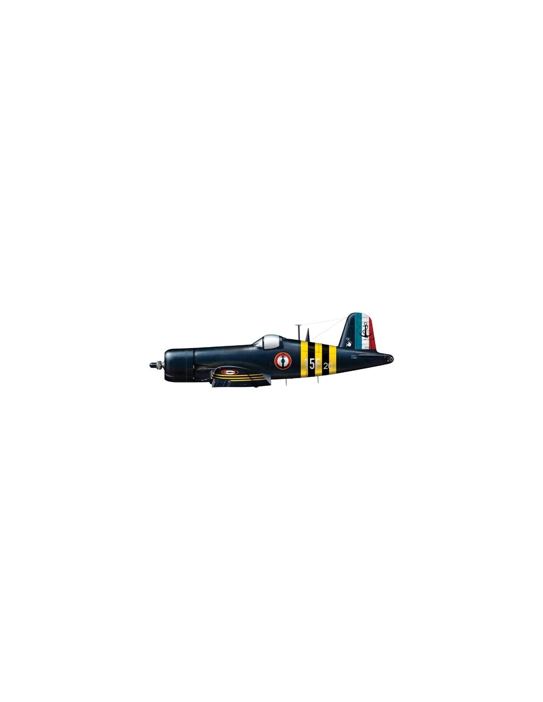 La conception révolutionnaire du F4U Corsair a été créée en 1938 en réponse à la demande de l'US Navy de concevoir un chasseur à grande vitesse stationné à bord de porte-avions. Chance Vought a relevé le défi, dans le but d'installer le plus puissant des moteurs disponibles (c'est-à-dire le moteur Pratt-Whitney Double Wasp) dans la cellule la plus petite possible. La clé était de placer le train d'atterrissage maladroit dans les ailes inversées et tordues qui sont devenues la marque de fabrique de l'avion. Le vol du prototype eut lieu le 29 mai 1940, et l'US Navy reçut son premier Corsair de série le 31 juillet 1942. Cependant, les tests effectués par l'US Navy sur les porte-avions ont révélé quelques défauts de conception, ce qui signifie que la première série de production de l'avion est allée aux escadrons du Corps des Marines et a opéré à partir de bases terrestres. La première unité reçue par le F-4 était le VMF-124 à Gudalcanal. Il s'est rapidement avéré que la nouvelle machine surpasse définitivement toutes les machines ennemies et, à plusieurs égards, également le F-6 Hellcat. En même temps, cependant, il était très difficile à piloter et nécessitait une grande attention lors de l'atterrissage. Fait intéressant, jusqu'à 20% seulement des missions Corsair ont décollé des ponts des porte-avions, et pendant presque toute la guerre, elles sont restées principalement une machine du Corps des Marines. Après la fin de la Seconde Guerre mondiale, les F-4 Corsair restèrent en ligne et participèrent à la guerre de Corée (1950-1953). Données techniques (version F4U-4) : Vitesse maximale : 731 km/h, vitesse de montée : 19,7 m/s, plafond maximal 12649 m, portée maximale : 1115 km, armement : fixe - 6 mitrailleuses M2, calibre 12, 7mm et 4 canons Browning de 20 mm, fronde - jusqu'à 1800 kg de bombes.