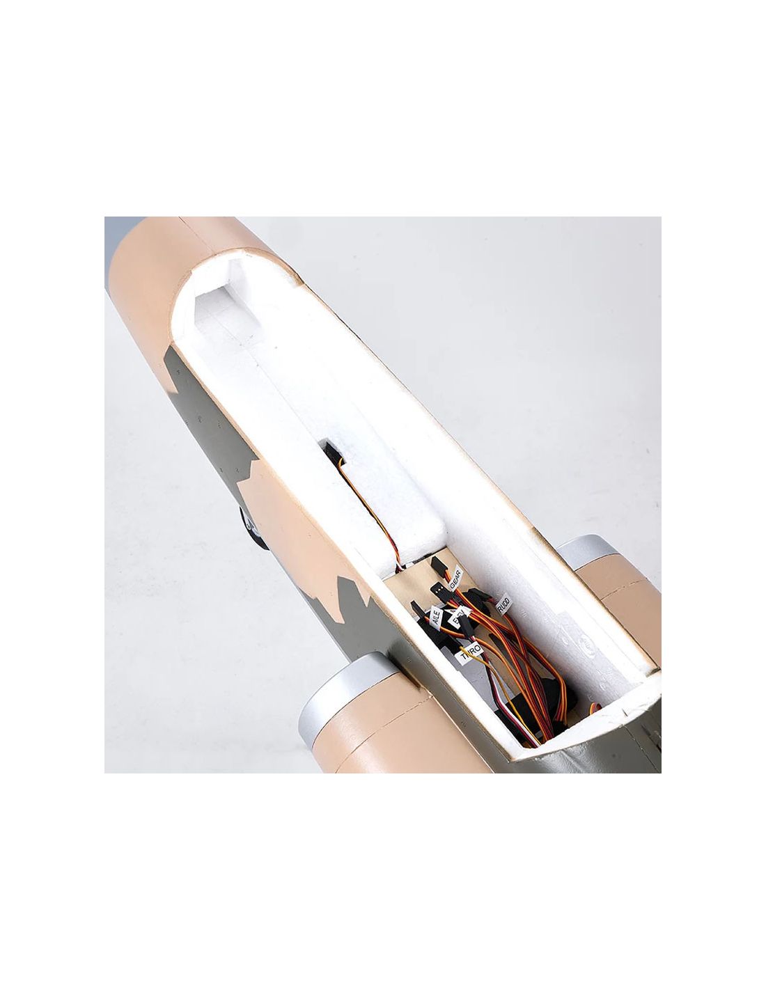 L'avion est équipé d'une mousse EPO 34,5x très résistante et est peint en orange vif ou en camouflage pour offrir une excellente visibilité dans le ciel.