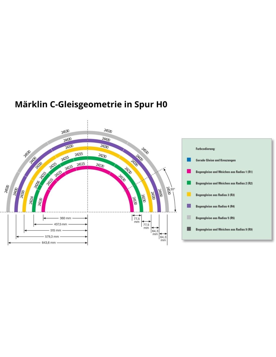 Rayon de courbure du rail en C Märklin R1 360 mm 15°