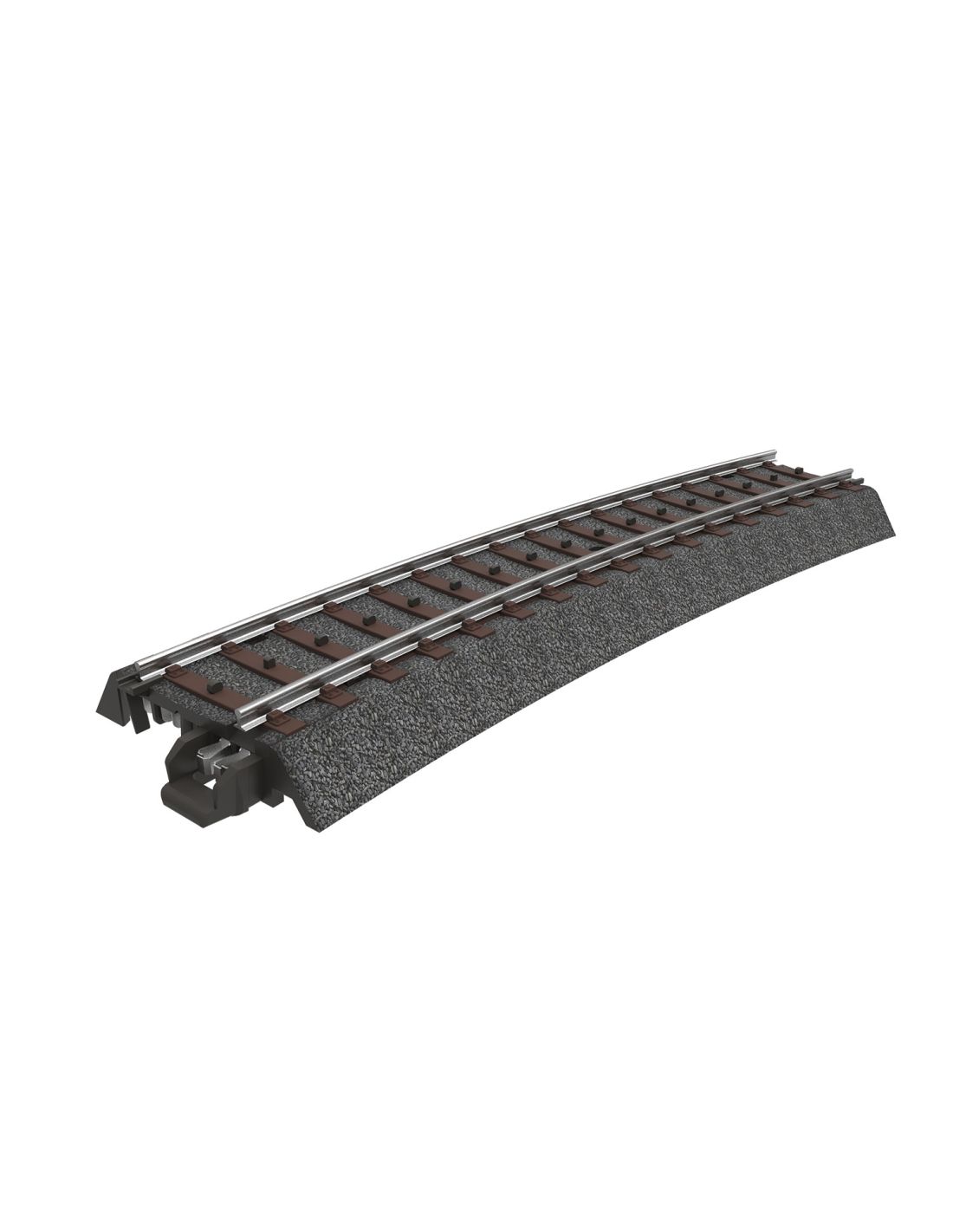 Rail courbe Märklin en C, rayon R3 de 515 mm / 15°. Connexion par encliquetage. Montage et démontage rapides et faciles. Stable et durable. Système Märklin H0 : grâce aux rails de transition, il est toujours possible de combiner différents systèmes de rails Märklin. Le fonctionnement fiable du rail central et la masse commune des deux rails sont toujours maintenus, permettant des configurations de réseau exceptionnelles sans câblage complexe (par exemple, pour les boucles de retournement et les triangles de voie). Connexion parfaite : la connexion mécanique et électrique entre deux rails en C est invisible de l’extérieur. Le rail apparaît ainsi comme un monobrin, à l’image du prototype. Aucun connecteur spécial n’est nécessaire. Solidité invisible : grâce à cette connexion par encliquetage stable située sous le rail, la géométrie du réseau est maintenue avec précision sans avoir à visser les rails. Le montage et le démontage sont ainsi rapides et faciles, à tout moment et partout ! Espace polyvalent : Le remblai (sous la voie) offre un espace généreux pour l’installation de moteurs d’aiguillage ou de décodeurs électriques, le passage de câbles, et bien plus encore. L’ensemble est totalement invisible de l’extérieur. Pour la conception de votre réseau ferroviaire miniature, utilisez notre logiciel de planification de voies, référence 60521.