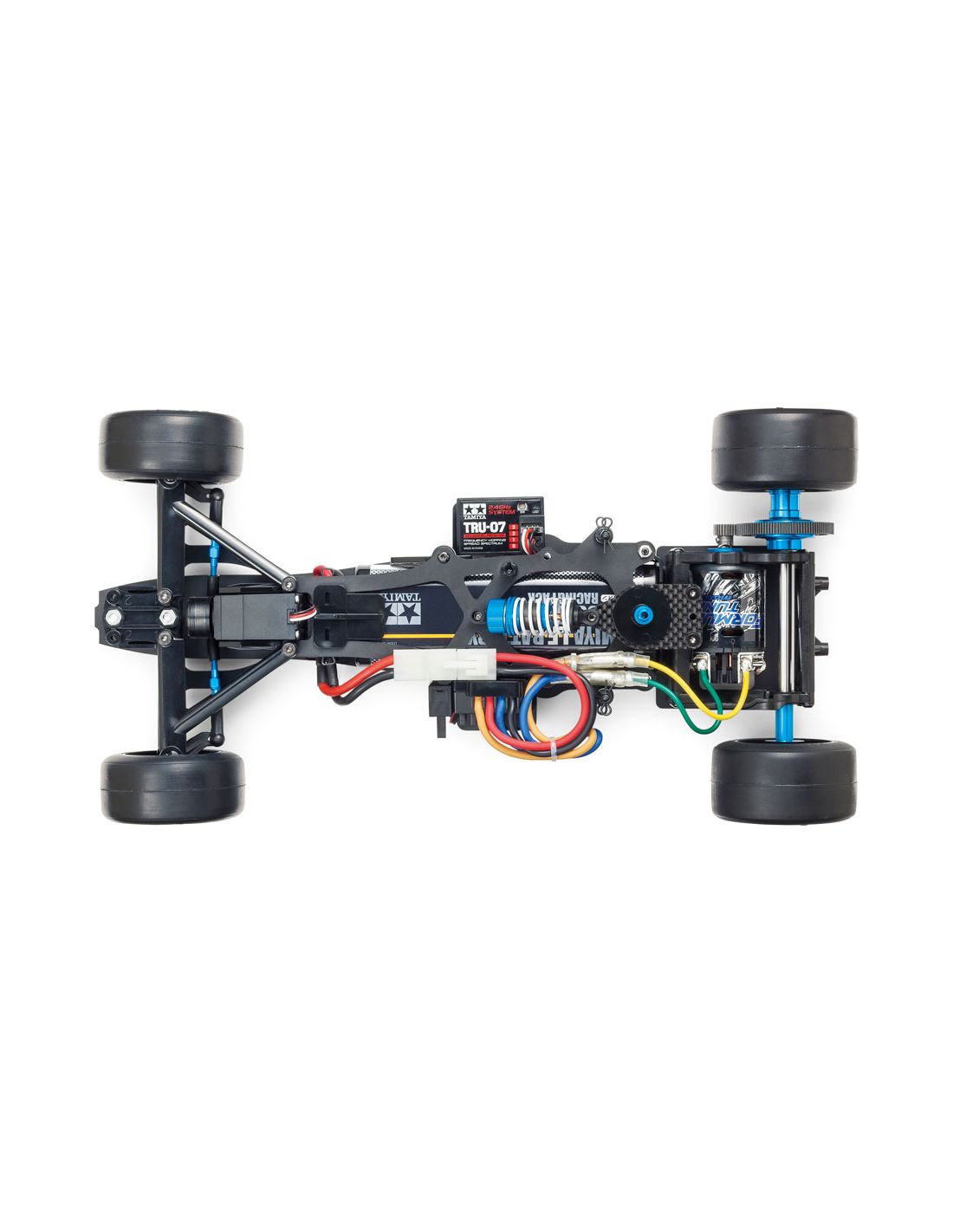 Ce châssis long et étroit reproduit la configuration typique des voitures de F1 radiocommandées. Sa transmission arrière, sa suspension spécifique et son centre de gravité bas permettent d’obtenir une conduite très réaliste, particulièrement adaptée aux circuits RC asphaltés.