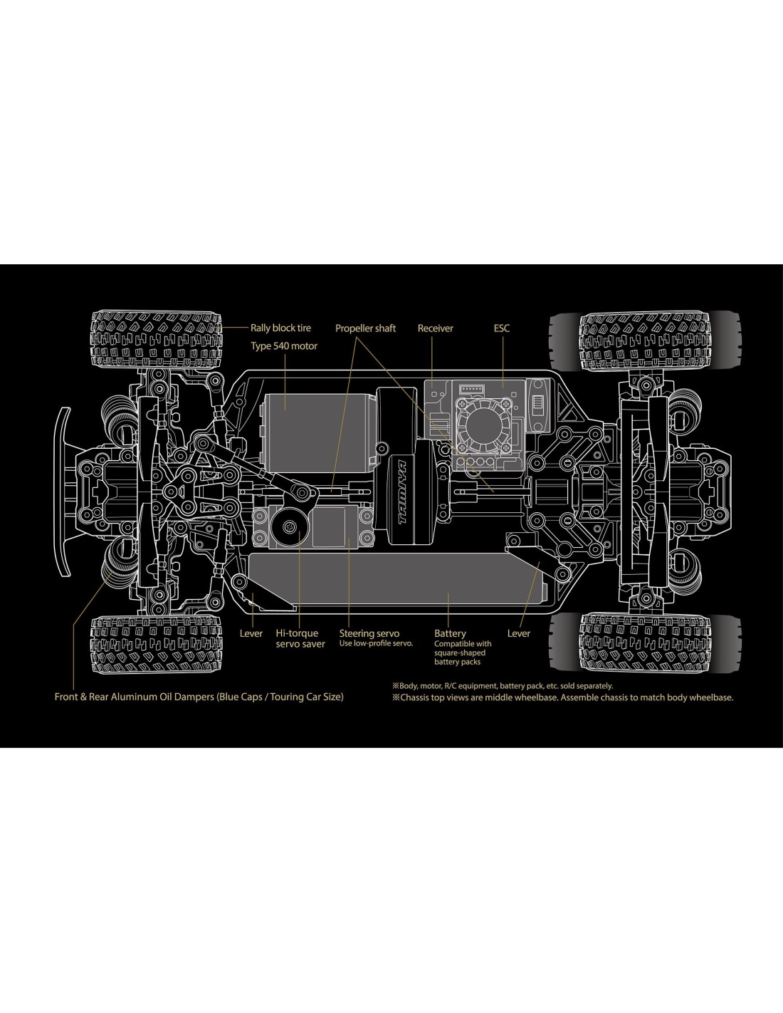 - Type : châssis RC rally / piste
