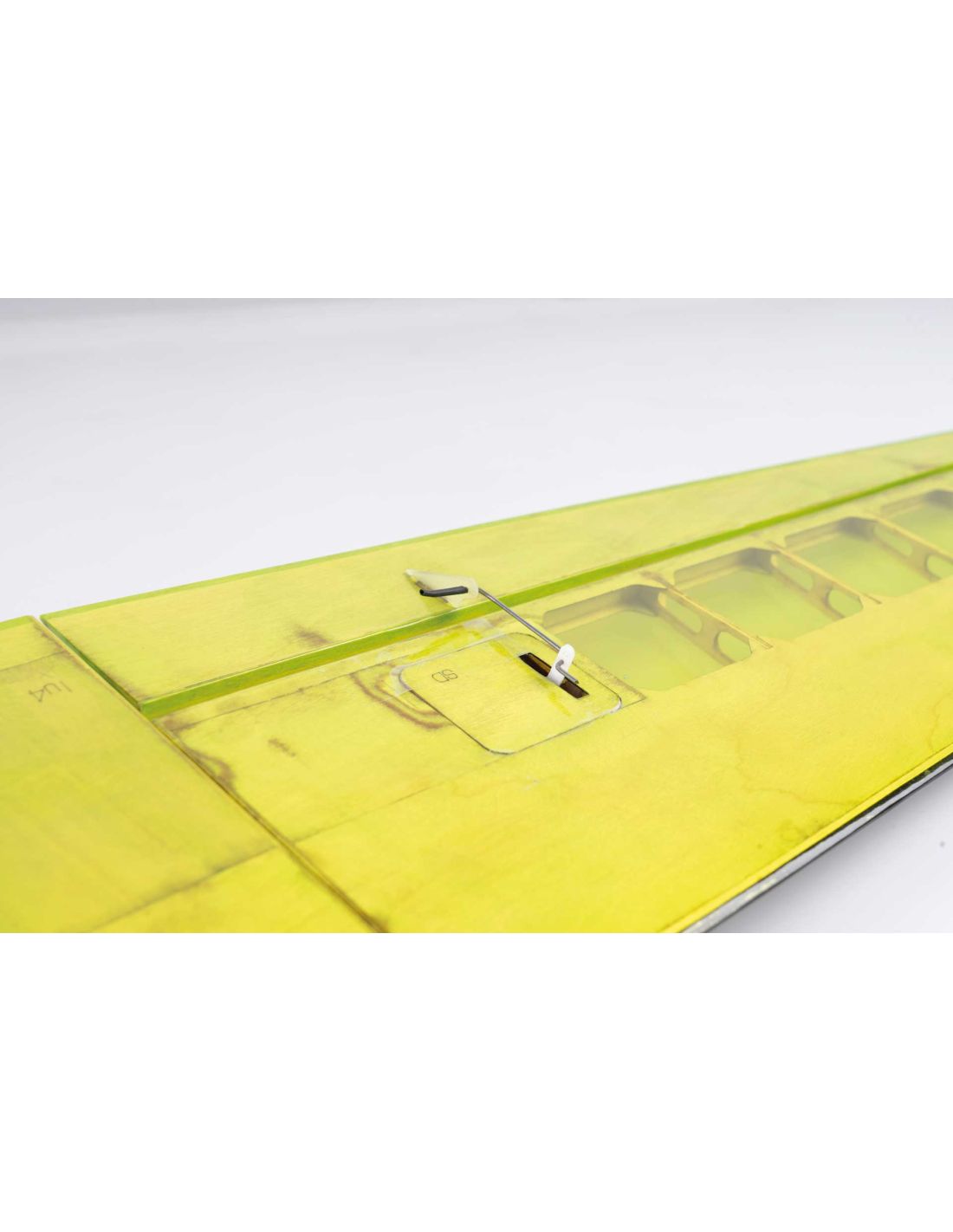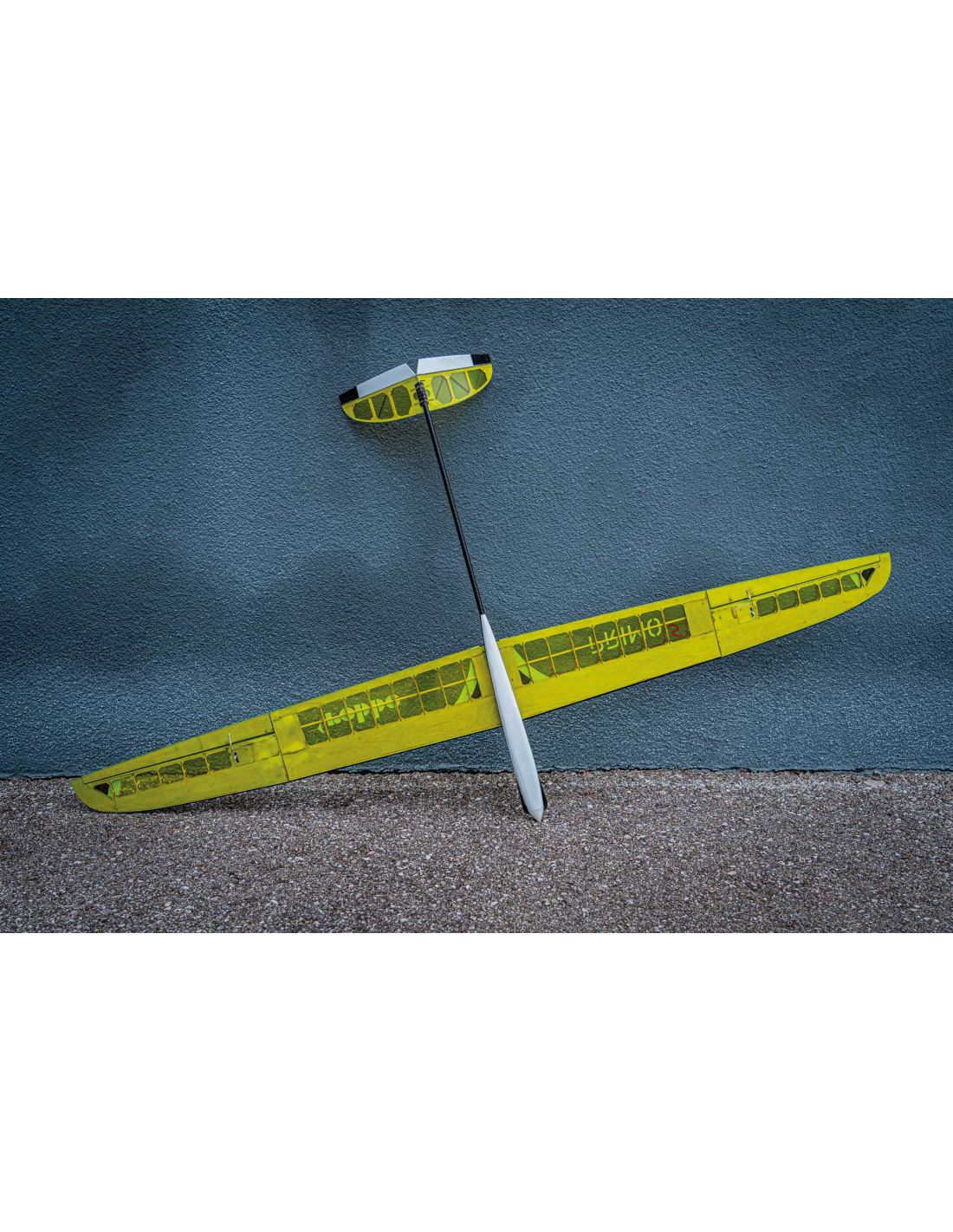 La construction du modèle est exceptionnelle. L’utilisation de contreplaqué crée une aile extrêmement stable, résistante à la torsion et pourtant légère. Celui-ci est conçu de manière si sophistiquée qu’il n’y a pas de plan de construction. Les pièces se centrent déjà lors de l’assemblage et les déformations sont donc pratiquement exclues. Pour la construction du fuselage et le montage de l’empeigne en V, un bauhelling est inclus. Cela empêche également les erreurs et facilite considérablement la construction. Comme l’aile, le fuselage sait briller grâce à sa grande stabilité et à son faible poids.