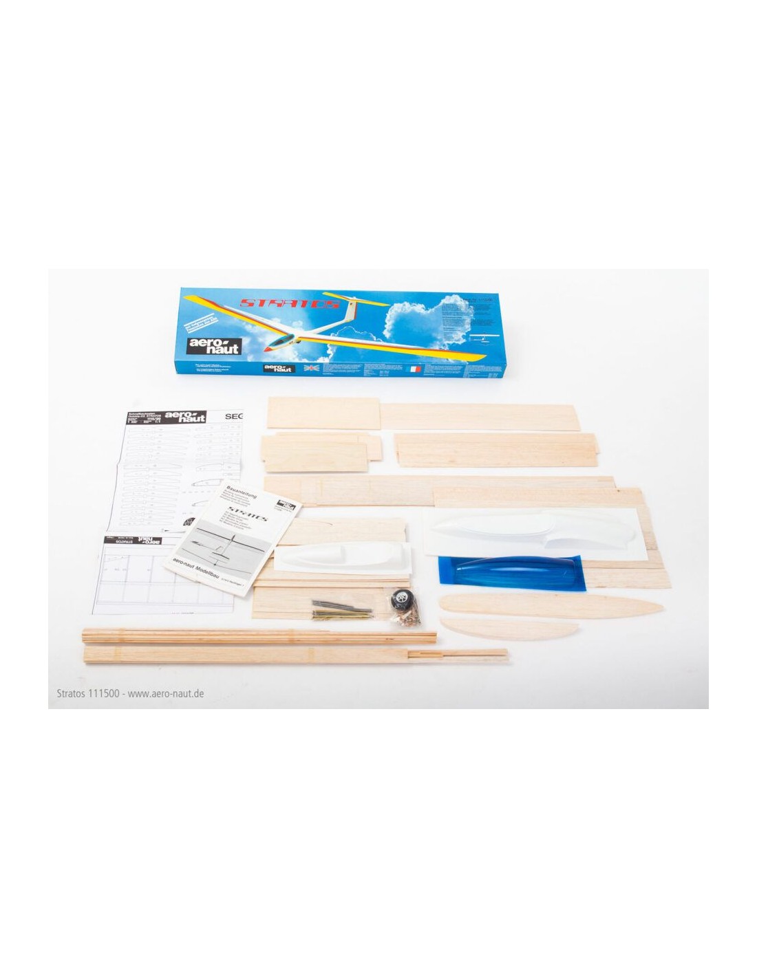Le modèle est entièrement construit en bois. Le plan de construction prévoit un contrôle via 2 axes. Stratos est un planeur thermique léger qui peut également très bien voler dans des pentes légères. Le profil d'aile à faible traînée et la forme fine et élégante du fuselage garantissent un angle de plané plat à des vitesses de vol plus élevées. Néanmoins, Stratos n'est pas un modèle de vitesse mais un planeur thermique confortable qui sait utiliser les plus petites ascendances.