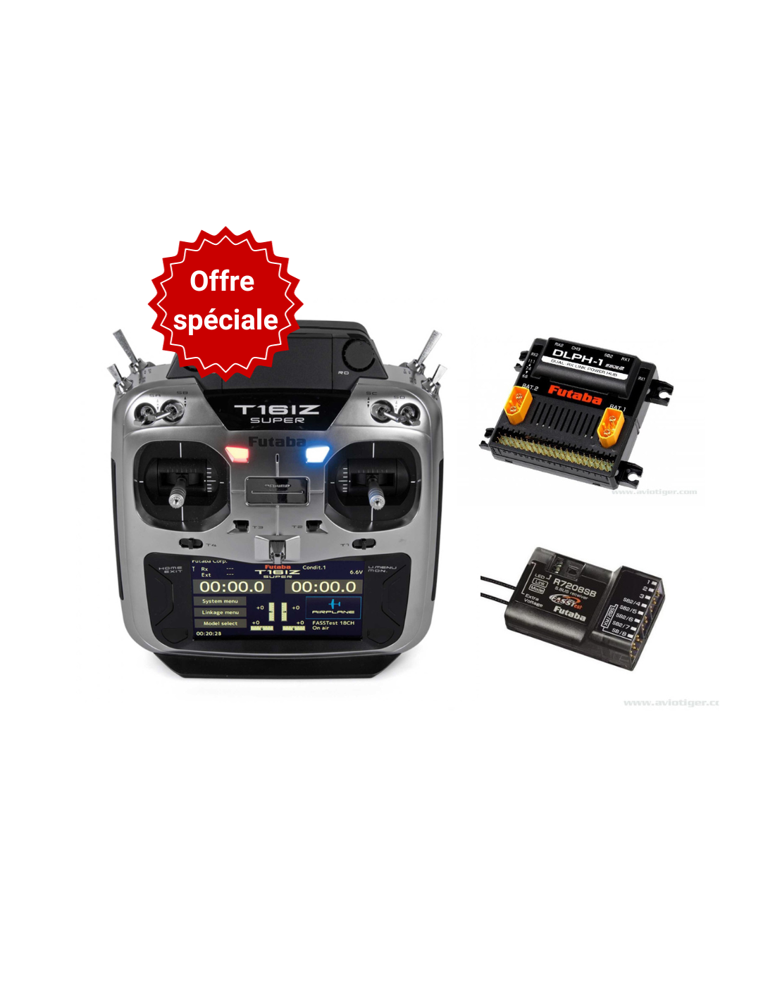 Radio futaba T16iZ Super + recepteur R7208SB + avec DOUBLE ALIMENTATION FUTABA DLPH-1 - Nouveauté