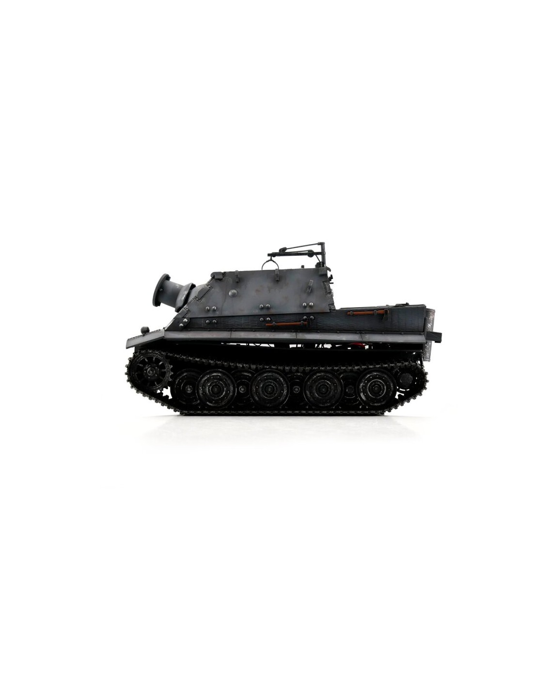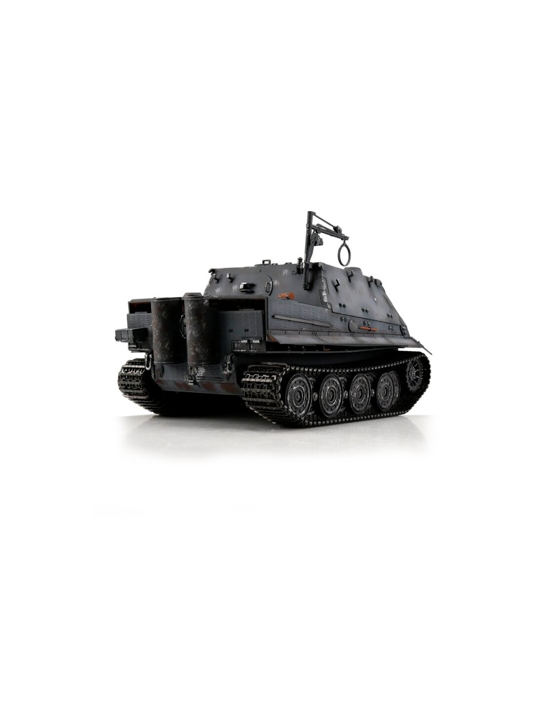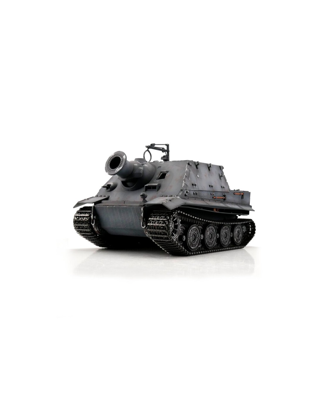 Le Sturmtiger Grey se distingue par sa silhouette massive et ses détails caractéristiques : tourelle large, canon imposant, blindage épais et chenilles articulées. La peinture grise et les finitions BB Smoke apportent un réalisme supplémentaire, parfait pour les dioramas ou les combats RC historiques.