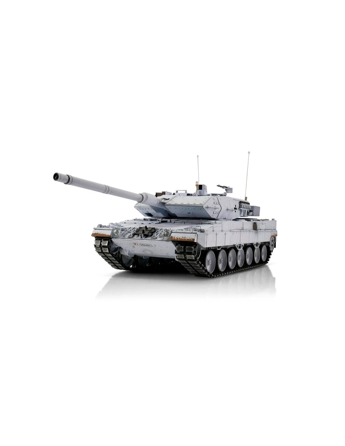 Le Leopard 2A6 RC 1/16 UN BB se distingue par sa finition originale et son niveau de réalisme. Sa livrée blanche unique attire immédiatement l’attention et apporte une touche différente dans une collection de véhicules radiocommandés militaires.