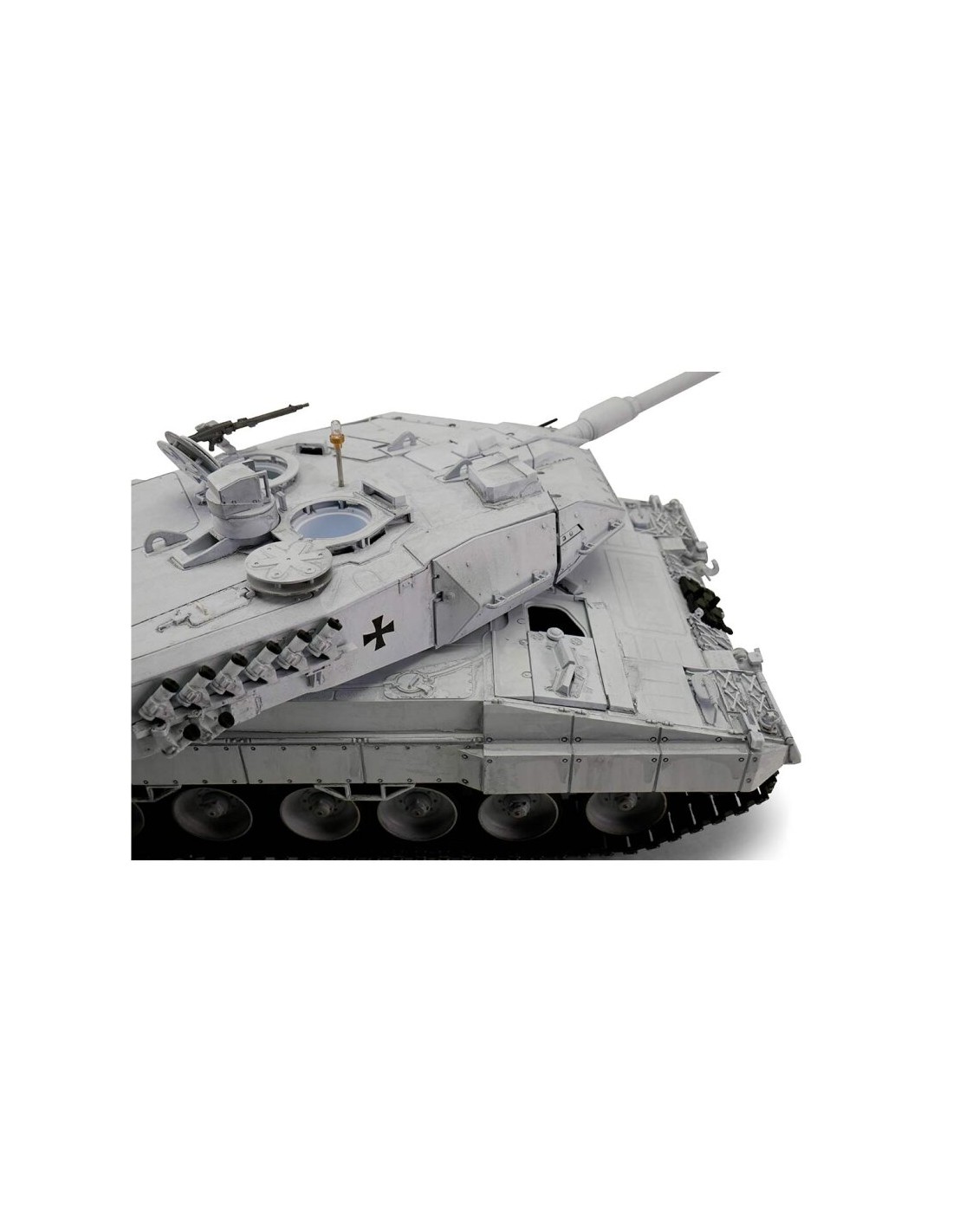 Le 1/16 RC Leopard 2A6 UN BB est une reproduction détaillée du célèbre char de combat Leopard 2A6, proposé ici dans une finition blanche inspirée des véhicules des missions internationales. À l’échelle 1/16, ce char radiocommandé offre un niveau de réalisme impressionnant, aussi bien par son design moderne que par ses nombreuses fonctionnalités interactives.