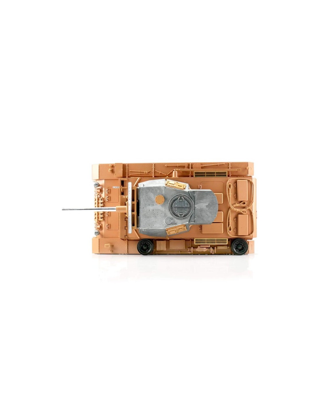 Malgré sa finition non peinte, ce char radiocommandé conserve toutes les fonctionnalités immersives : système de tir de billes BB 6 mm, tourelle rotative et châssis robuste. Le modèle est conçu pour offrir une expérience de pilotage réaliste et satisfaisante, que ce soit pour exposition ou pour des scénarios de bataille entre chars RC.