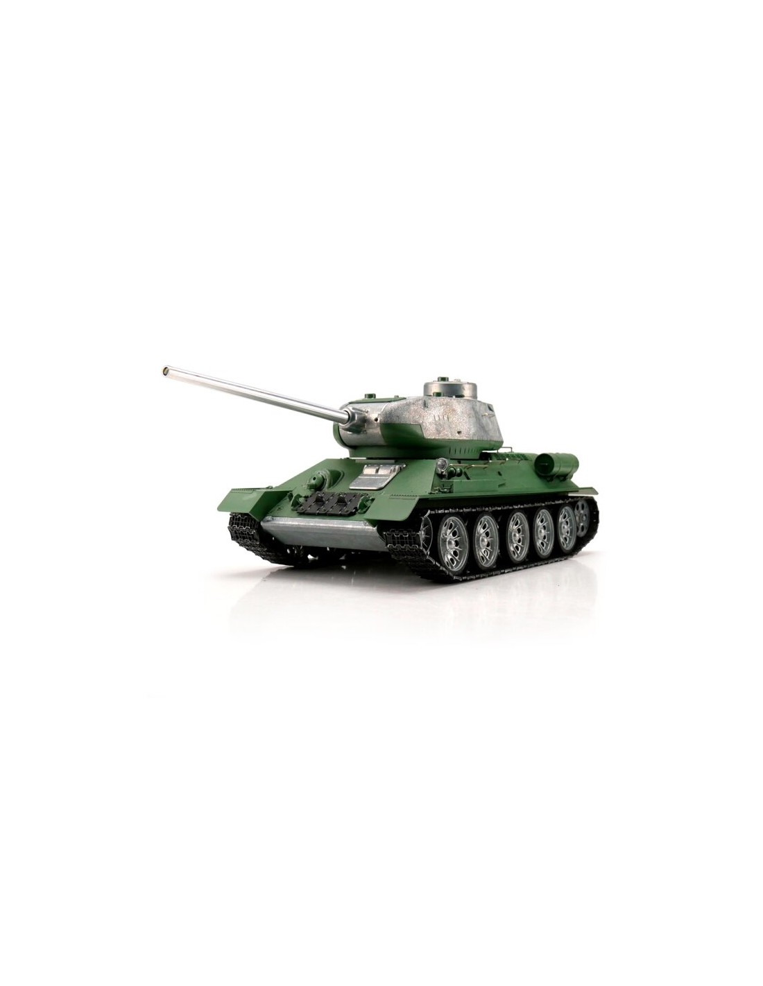 Le T-34/85 RC bénéficie d’un châssis solide et de chenilles efficaces, offrant stabilité et contrôle sur différents terrains comme la terre, le gravier ou l’herbe courte. La direction différentielle permet des rotations sur place et des virages précis, reproduisant fidèlement le comportement du char historique.