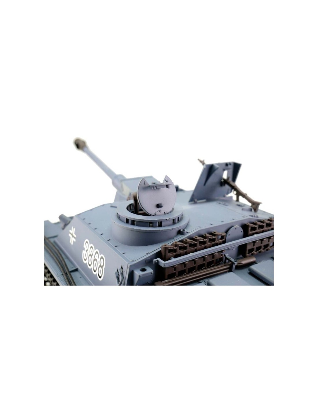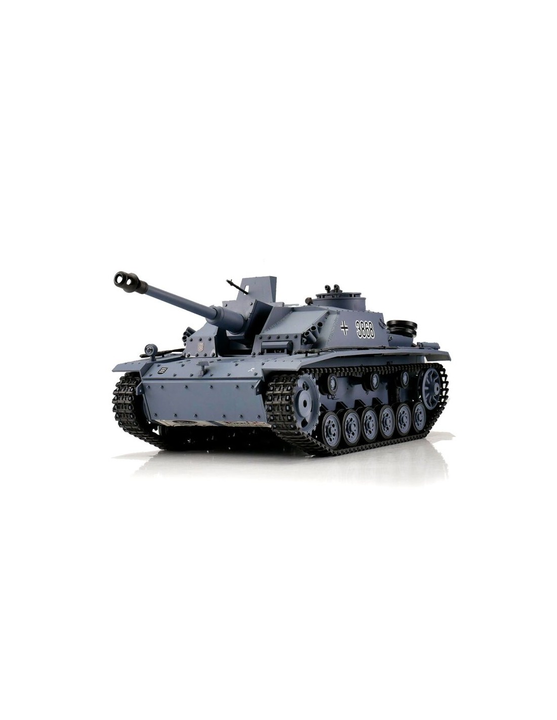 Le Sturmgeschütz III vers. G gris BB+IR est un modèle RC conçu pour les passionnés de tanks militaires, offrant une reproduction fidèle du Sturmgeschütz III G, une version largement utilisée pendant la Seconde Guerre mondiale. Ce modèle à l’échelle 1/16 est équipé de rails métalliques robustes pour une meilleure traction sur tous types de terrains et propose des fonctionnalités exceptionnelles pour une immersion totale.