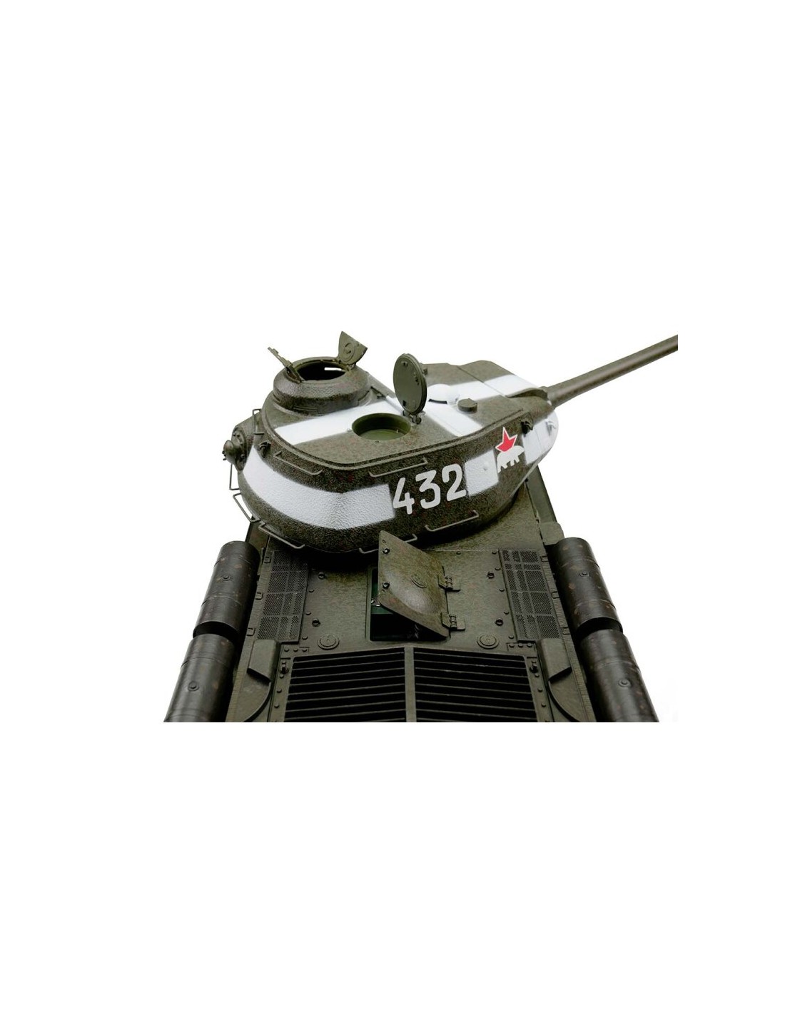 Le IS-2 1944 vert IR est conçu pour offrir des performances exceptionnelles sur différents types de terrain. Les chenilles métalliques permettent une excellente traction, assurant une conduite fluide sur des surfaces irrégulières et même légèrement accidentées. Que vous l’utilisiez en extérieur ou en intérieur, il vous offrira une stabilité et une manœuvrabilité qui ne laisseront pas de place aux doutes.