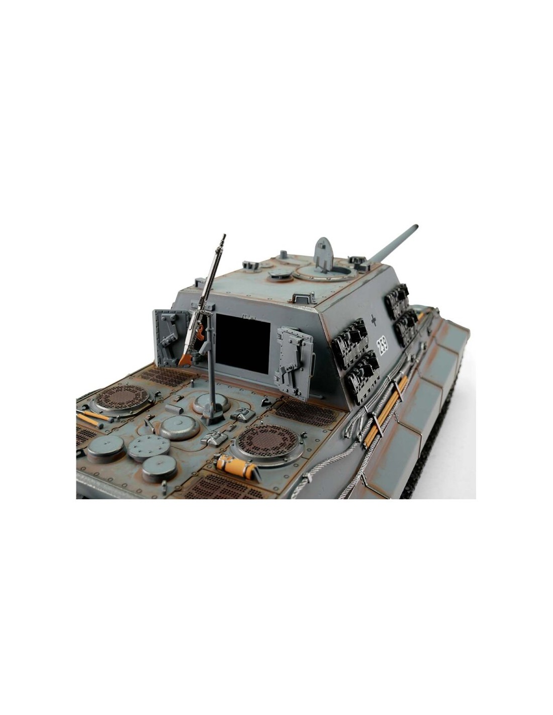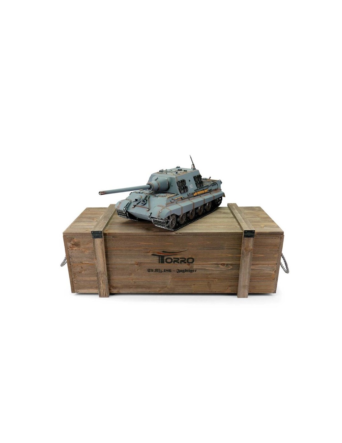 Le Jagdtiger RC 1/16 gris IR est une réplique fidèle du célèbre chasseur de chars allemand utilisé pendant la Seconde Guerre mondiale. Ce modèle radiocommandé de haute qualité est équipé de chenilles métalliques robustes et d'un système infrarouge (IR) pour des batailles interactives réalistes. Avec son camouflage gris authentique et son système de tir BB, ce modèle est idéal pour les passionnés de modélisme militaire, offrant une expérience immersive et dynamique.
