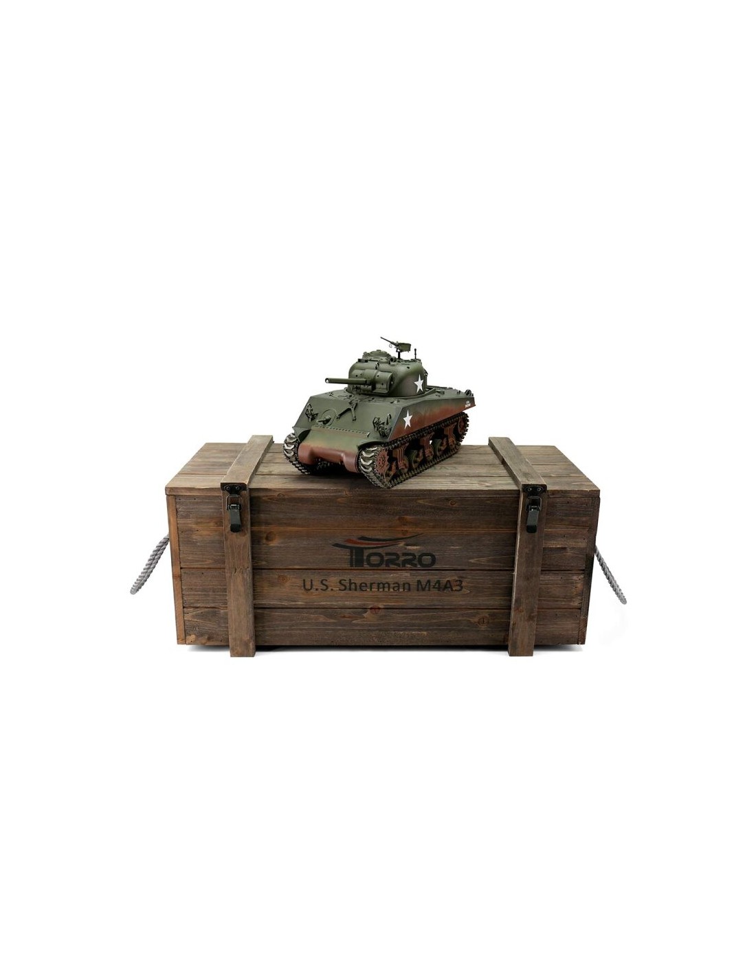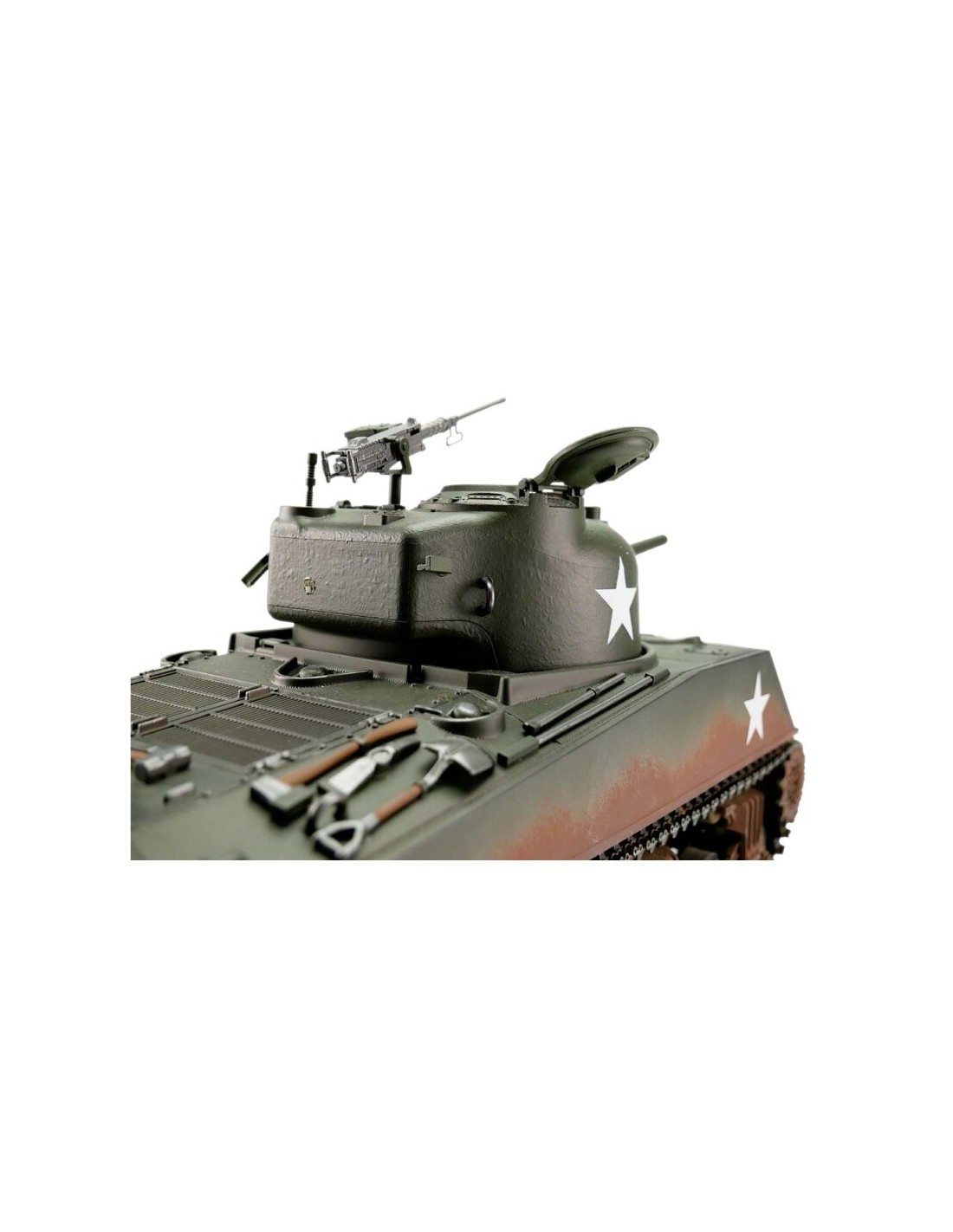 - Type : Char M4A3 Sherman RC avec technologie IR, tir BB, fumée verte et chenilles métalliques