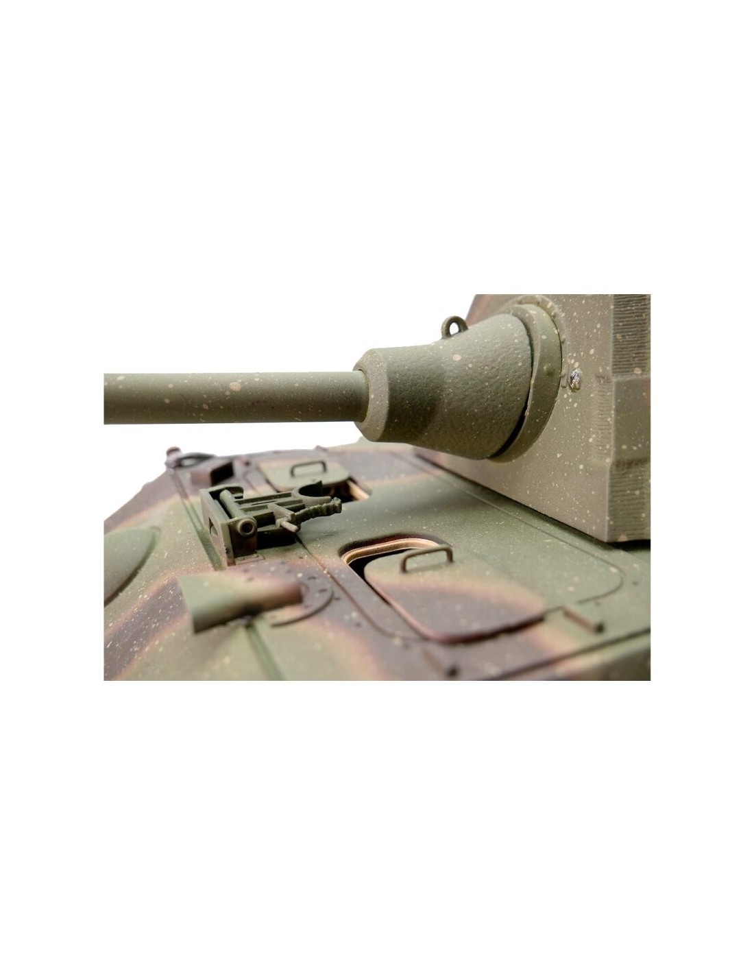 - Camouflage Panther F : Le modèle présente un camouflage détaillé, inspiré des Panthers utilisés en 1945. Ce camouflage authentique, composé de nuances de vert et de marron, reproduit les peintures utilisées pendant la Seconde Guerre mondiale.