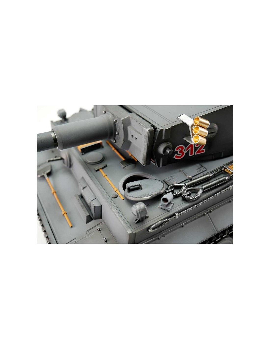 - Design authentique : Le modèle présente une reproduction fidèle du Tigre I, avec un camouflage gris fumigène et des détails historiques qui en font une véritable pièce de collection.