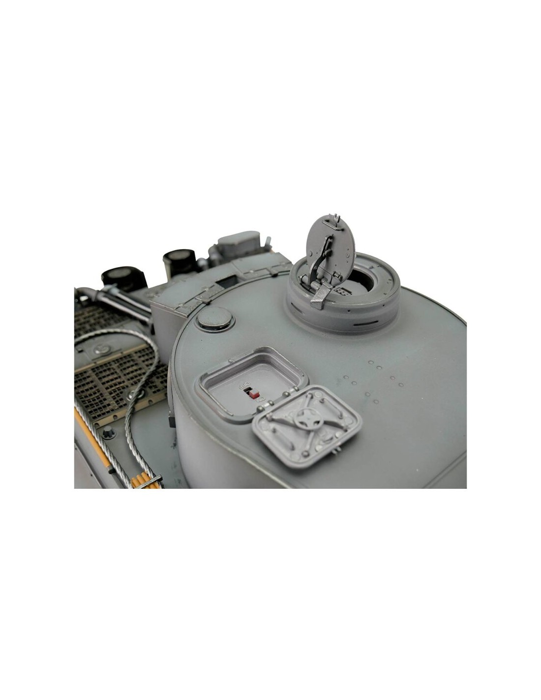 - Type : Char Tigre I radiocommandé avec technologie IR, tir BB, fumée et chenilles métalliques