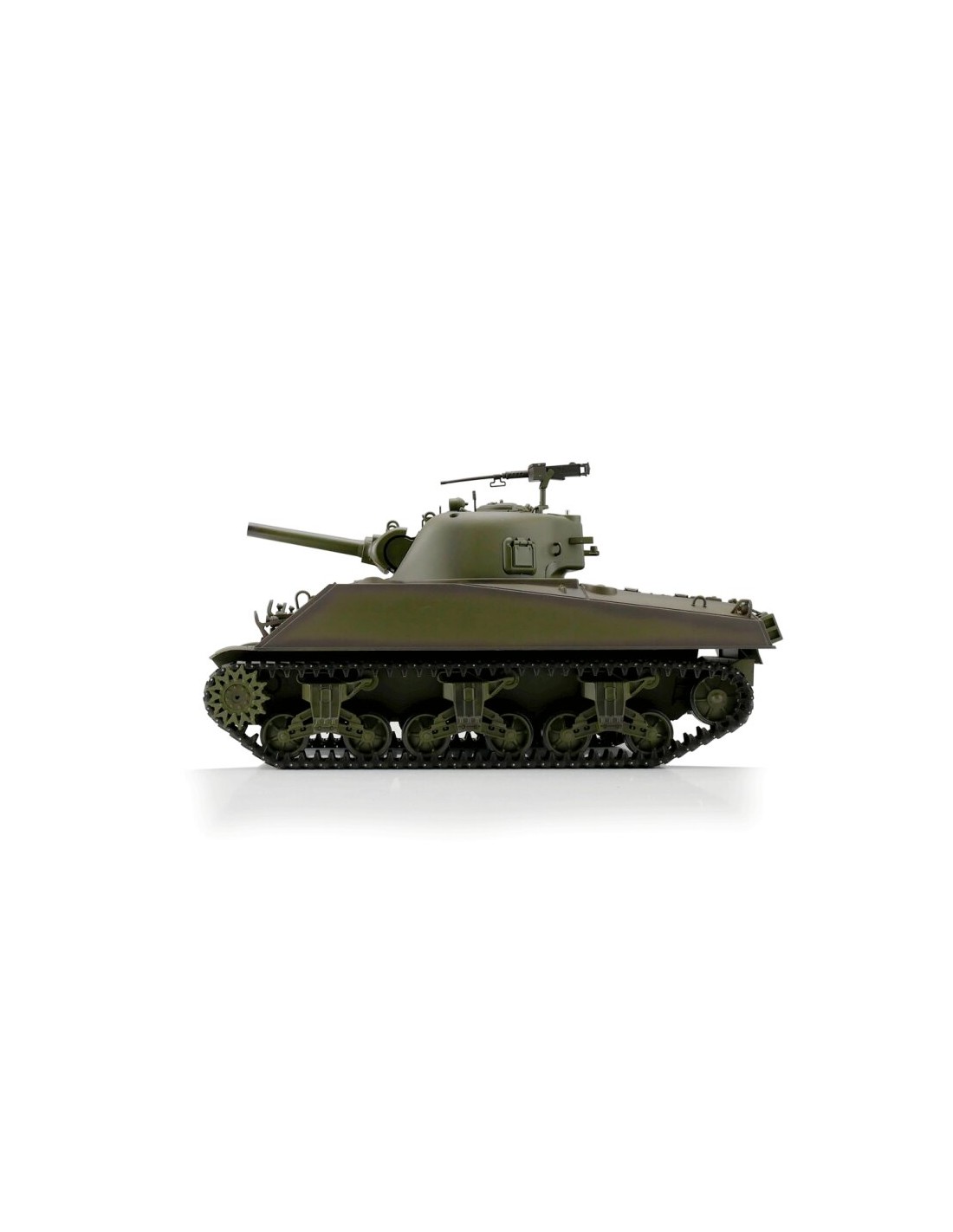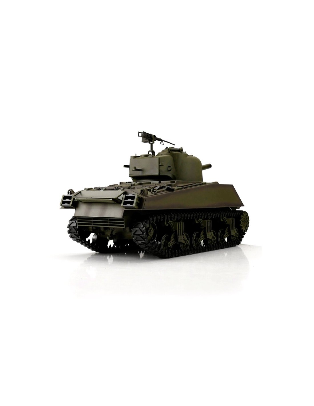Présentation du M4A3 Sherman radiocommandé 1/16 vert BB+IR (chenilles métalliques)